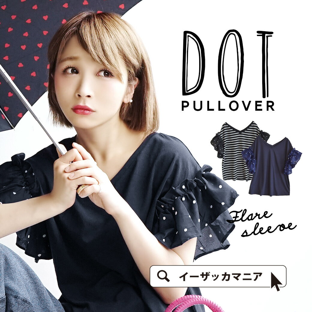 日本必買女裝 e-zakka 圓點褶邊喇叭袖T恤/紅色款-免運/代購